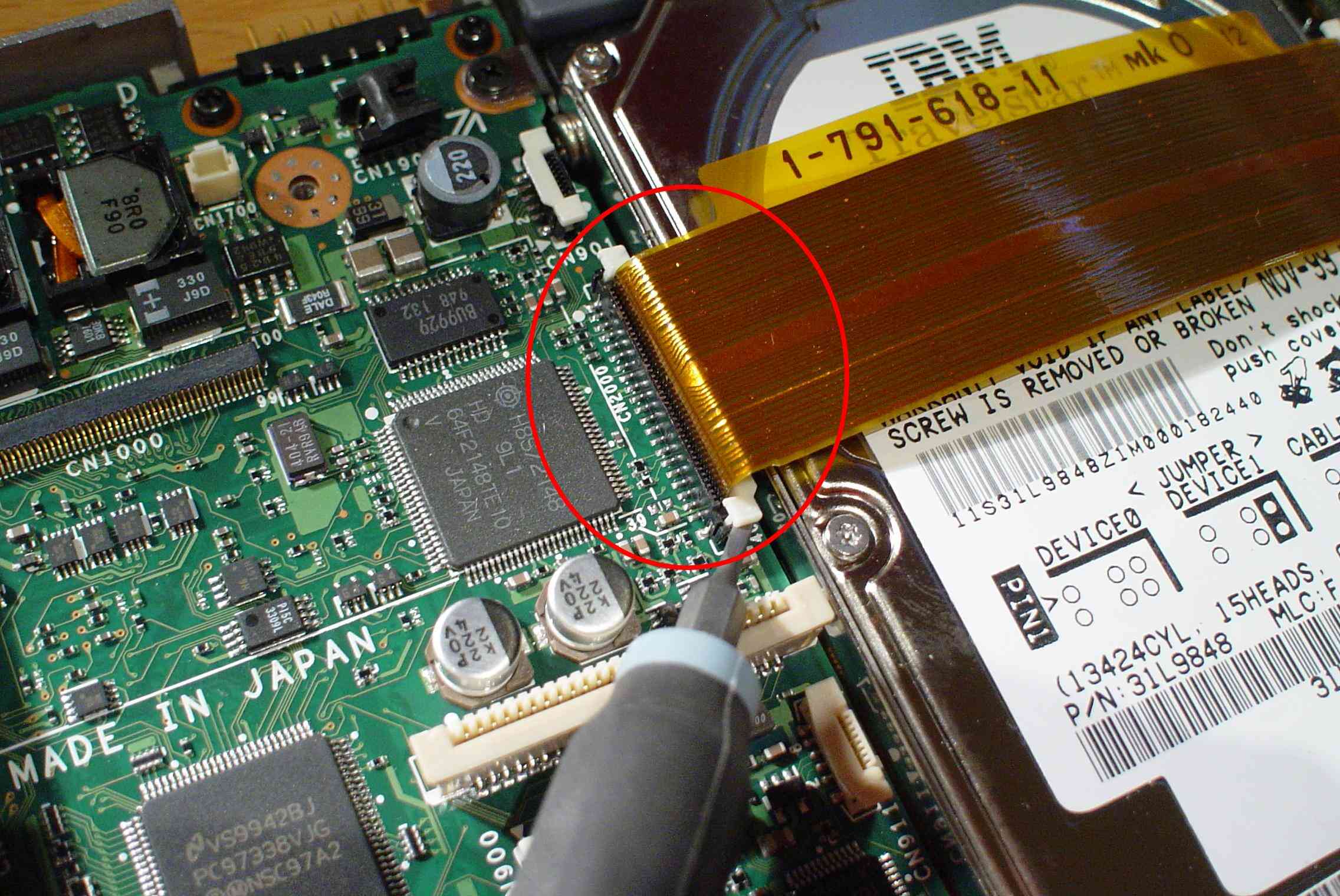 - Now remove the ribbon cable covering the HDD on both sides.